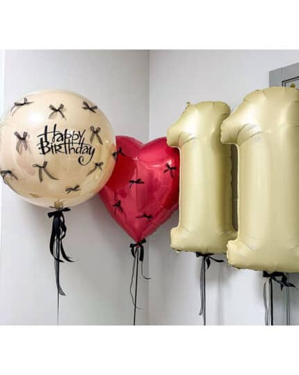 — Малый — около 30 см. Используется для небольших надписей или конфетти и тонких лент. В этом размере нередко применяют прозрачный латекс вместо баблс.