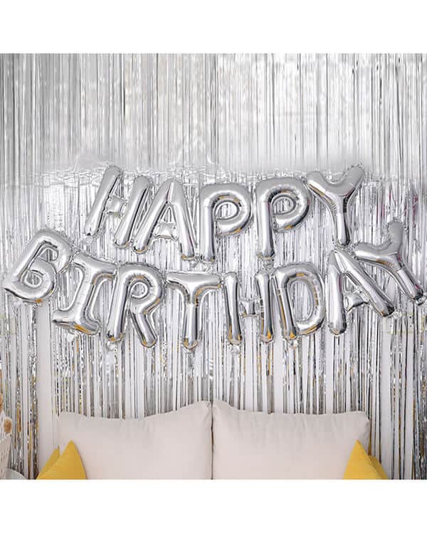 Надпись Happy Birthday Серебро 41см